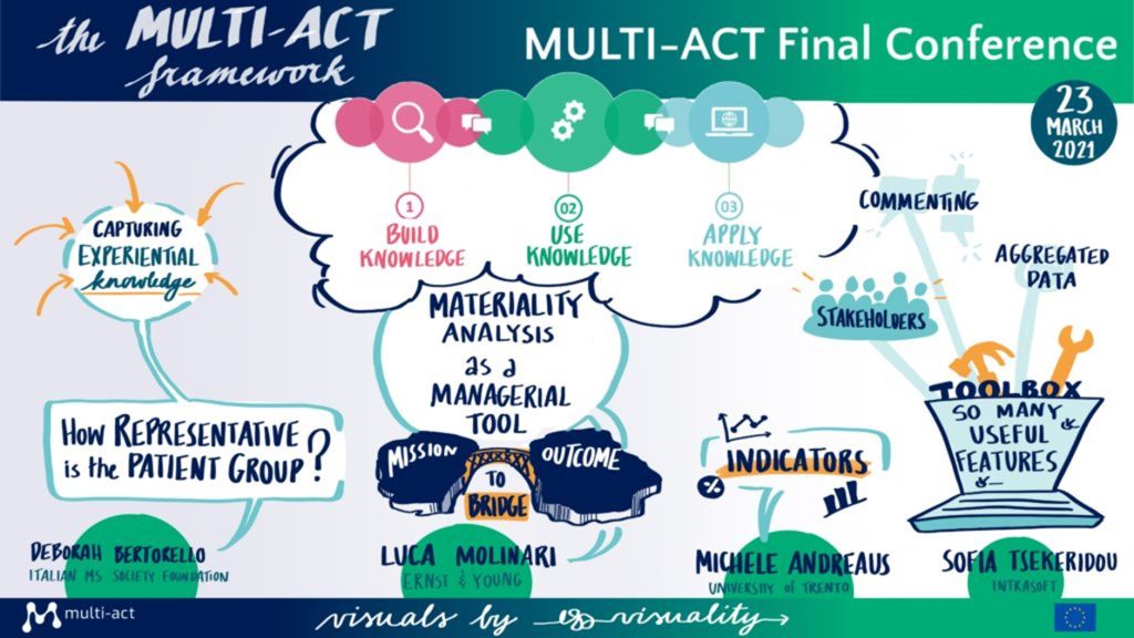 Finally, members of the project consortium presented the process used to develop the MULTI-ACT Collective Research Impact Framework (CRIF), described the components of the framework (the Governance Model, the Patient Engagement Guidelines and the Master Scorecard), and presented the legacy of the project, the MULTI-ACT Toolbox.